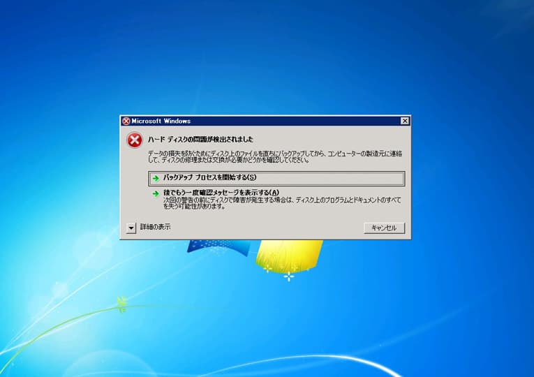 ・WindowsのパソコンでWDのHDDが認識しない際に表示されるエラーメッセージ例