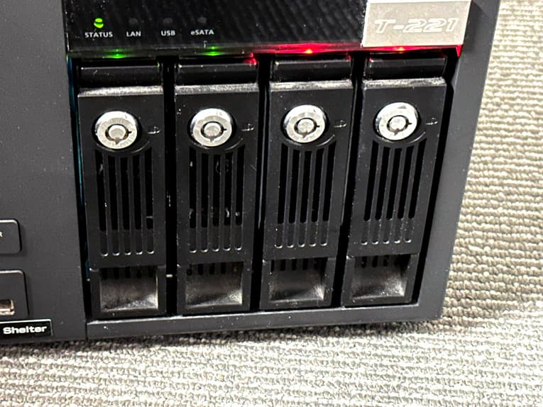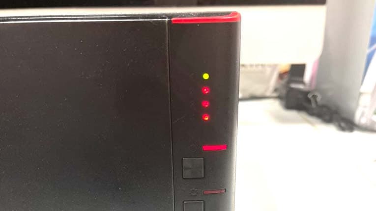 雷が鳴った・落雷が生じた後にはNAS本体やHDDのステータスランプが通常とは異なるパターンで点滅する、点灯しっぱなしになることがあります。これも雷の影響による内部障害が原因である事が多く、ランプが赤や橙(オレンジ)色で点滅、点灯した場合にはデータが消失する危険性が高まっていることがほとんどで慎重な対応が求められます。データを失いたくない方はNASの電源を切ることを優先した方が良いものです。