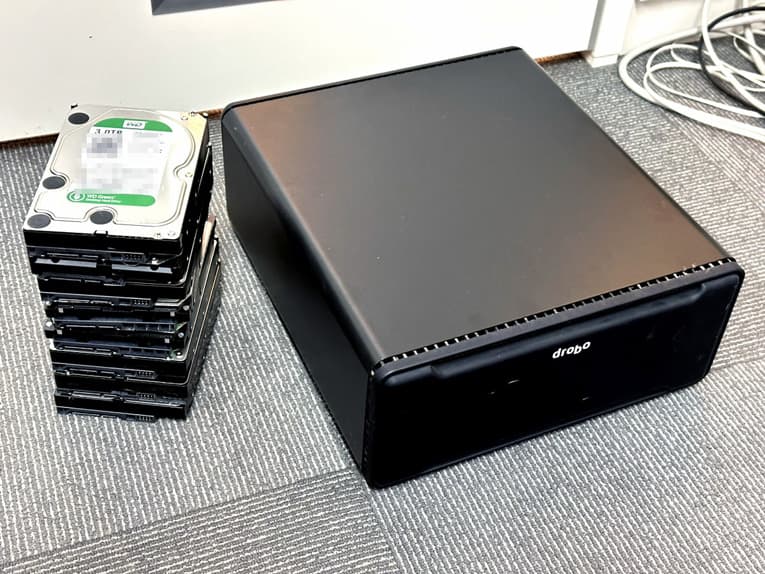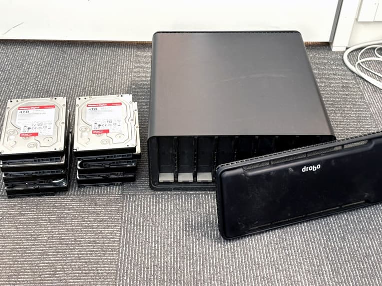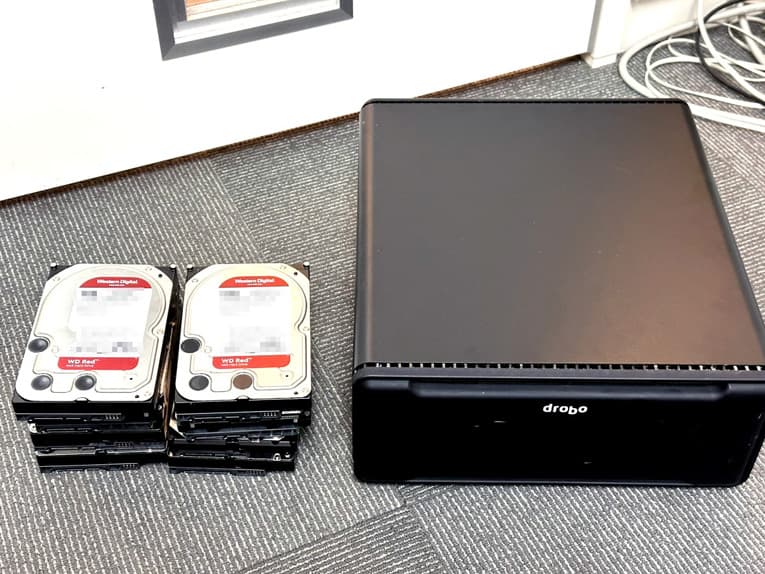 また、Drobo本体からディスクを取り外してパソコンに接続しただけでもファイルシステムが破損する・データが意図しない形で上書きされる、ディスクの故障具合が悪化する・フォーマットを促されるなど、Droboの修理やデータの取り出しができないばかりか後悔する結果に直結する行為となりえるため、試さない様に注意しましょう。