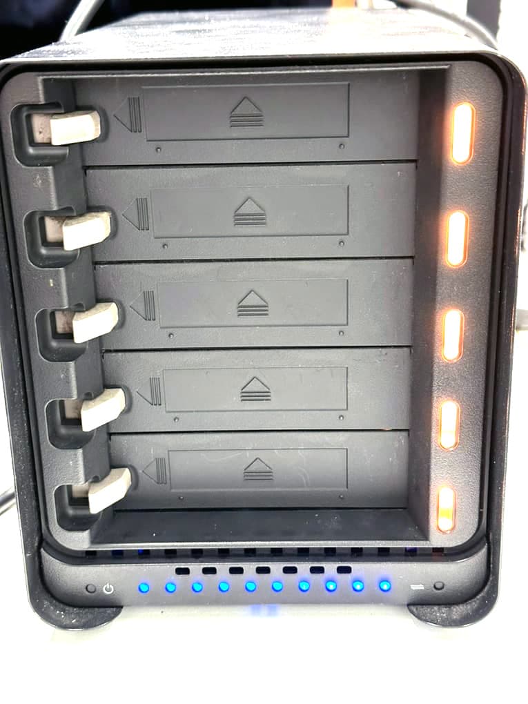 DroboにはLEDインジケーターが搭載されており、正常な動作をしている場合には緑や青のランプで表示されますが、HDDやSSDなどのドライブが壊れた・システムエラーが発生した際にはランプや警告ランプが赤く点灯・点滅して異常を知らせてくれます。ランプが赤く点灯・点滅した際にはDrobo内で深刻な問題が発生している事が大半です。複数のディスクが同時に故障した場合や内部の制御システムに問題が生じた時にもDrobo本体のランプが赤く点灯することもありえます。