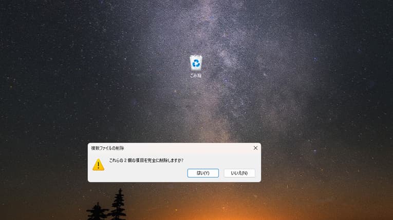 - 削除したファイルがごみ箱に送られず、直接削除される設定になっている。
