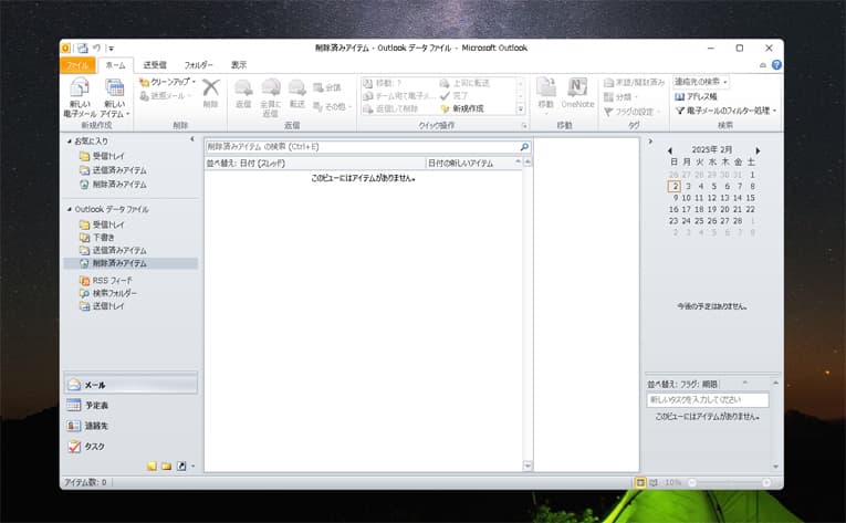 - 「ゴミ箱」や「削除済みアイテム」フォルダを開く。