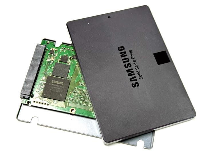 SSD(Solid State Drive)はフラッシュメモリを用いた記憶装置の1つで、従来のハードディスク(HDD)とは異なり、回転するディスクや磁気ヘッドといった可動部品を持たない点が大きな特徴として挙げられます。SSDはこの仕組みにより、高速なデータ読み書き性能や耐衝撃性・静音性といった特長を備えています。