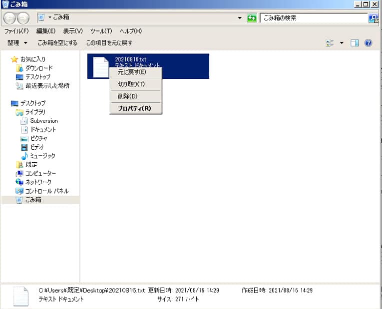 - Windowsのバックアップ・以前のバージョンから復元を行う