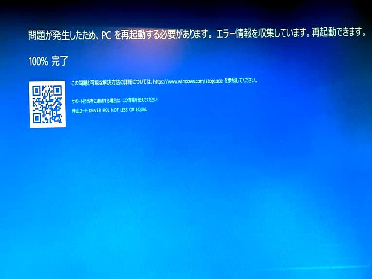 - ブルースクリーンや再起動が繰り返される