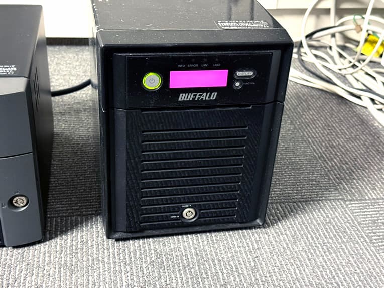瞬時の電圧変動(瞬電)や停電は、TeraStationに内蔵されているHDDやRAID構成にダメージを与える要因として挙げられます。データの書き込み中に電源が落ちると、RAID情報やファイルシステムが破損しやすく、通電後にTeraStationが起動できなくなる事も起こりえます。UPS(無停電電源装置)の導入が効果的な対処方法として挙げられますが、UPSがあっても停電や瞬電によってTeraStationが物理的・機械的に故障する、突然、寿命を迎えることも多いため注意が必要となります。停電の後や雷が鳴った後にTeraStationにトラブルが生じた際には重篤な障害が発生していることも多く、データを失いたくない場合にはNAS本体の電源を切ることを優先した方が良いものです。