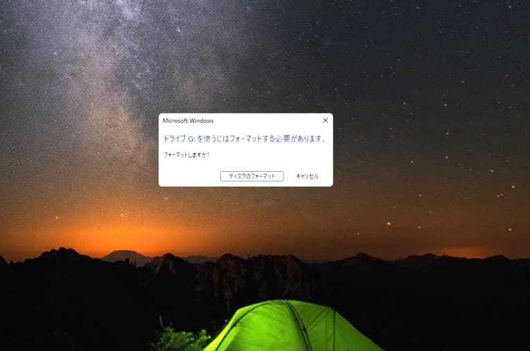「フォーマットしますか?」と表示されると押したくなるかもしれませんが、実行するとSDカードに限らず、エラーメッセージが表示されたデバイス内の全てのデータが消えてしまいます。フォーマットした後には論理的にも情報の痕跡が消されるため、復旧作業の難易度が格段に上がるものです。エラーメッセージは経年劣化や寿命によっても表示されることが多く、SDカードが認識しない・読み込まない状態に陥った際にデータを失いたくない方はエラーメッセージが出てもキャンセルを選び、絶対にフォーマットしないようにしましょう。