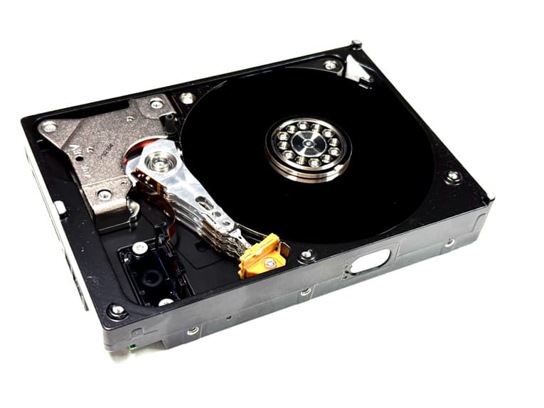 HDD内部の部品は、長時間使用していると摩耗や劣化が進み、正常に動作しなくなることがあります。特に、モーター、ベアリング、軸など、回転に関わる部分が影響を受けやすい傾向にあります。また、経年劣化(自然故障)や衝撃により、これらの部品が故障すると、HDDの回転が止まることもありえます。劣化したモーターは異音を発する、回転数が不安定になる不具合を生じさせることもあるものです。