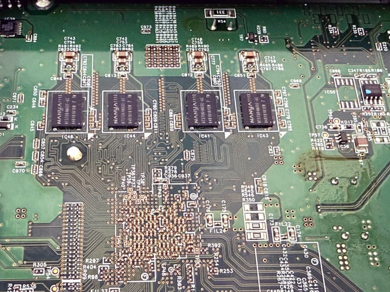 TeraStationにE18エラーが表示される最も大きな原因は、基盤上でSATA1を制御しているチップや回路の故障が挙げられます。