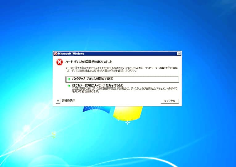 ・WindowsのパソコンでHDDに異常が出た際に表示されるエラーメッセージ例