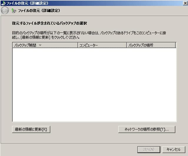 共有フォルダのデータを削除してしまった場合に上記の「ファイル履歴の設定」が完了している時にはバックアップオプションからデータの復元が可能となることがあります。