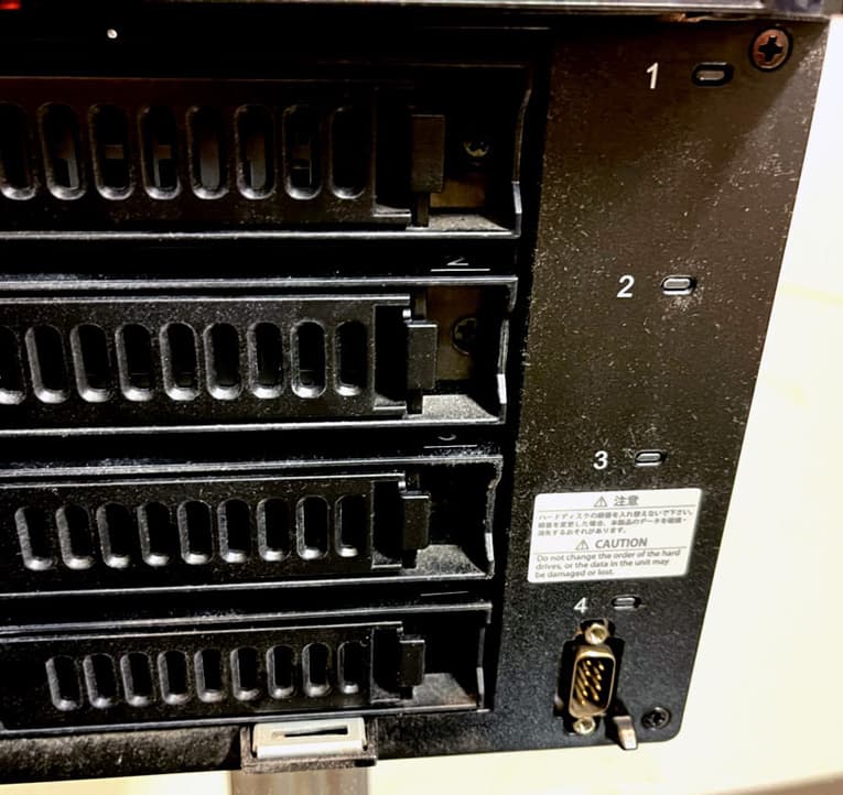 - E04が表示されている・エラーが出ている時にHDDを取り出すとRAIDの再構築(リビルド)がかかるため、データが失われる危険性が高まる。