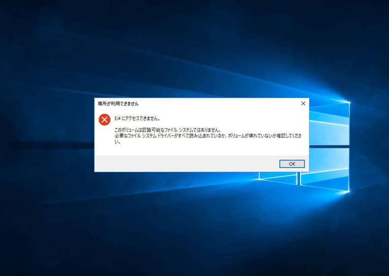 ・WindowsのPCでHDDに表示されるエラーメッセージ例
