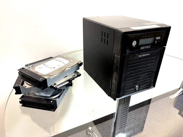 TeraStationなどのNASは複数のディスクを使ってRAIDを構築しています。停電の後にTeraStationにトラブルが発生した際にはHDDが故障していることが大半ですが、エラーが出たディスクを安易に交換することは避けた方が良いものです。RAID機能を過信してデータのバックアップが取れている・故障が疑われるHDDを交換すればTeraStationのデータを簡単に復旧・取り出しができると考えてHDDの交換を行ってしまうと他のディスクも取り返しのつかないくらい壊れてしまい、RAID情報も崩れる・ファイルシステムの損傷する・データの上書きが進むなど、大事なデータが消失する事態に直結してしまうことも多く起こりえるものです。