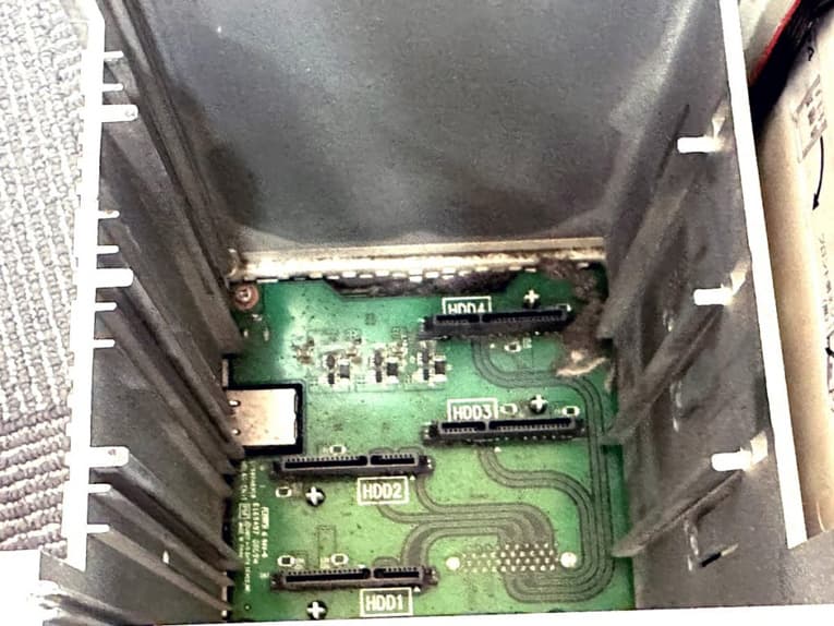 - LANDISKからHDDを取り外し、USBの外付けケース内に入れてPCと繋ぐ