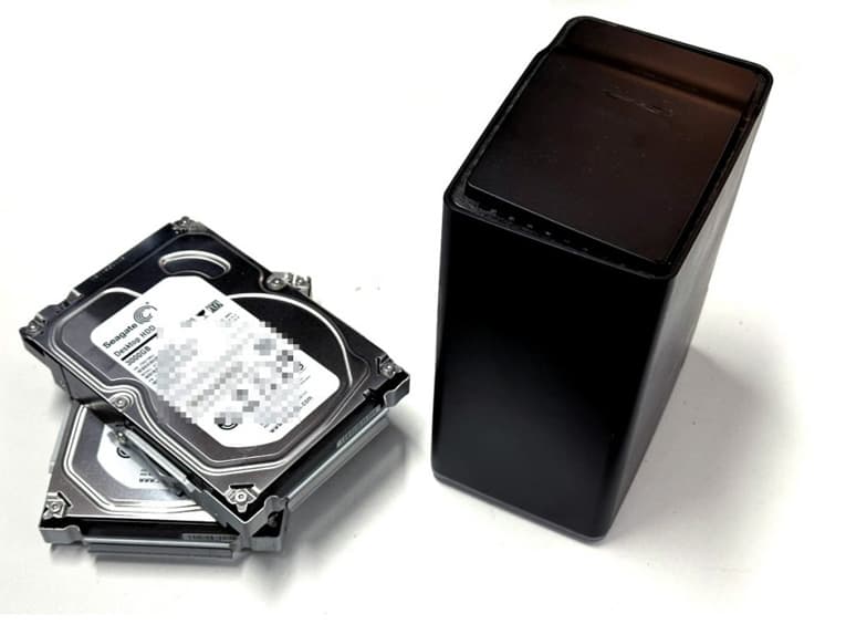 NASにアクセスができないなどの不具合が生じた際にNASからHDDを取り外してパソコンに直接、接続すれば簡単にデータが取り出せる・復旧できるのでは?と考えてしまうかもしれませんが、止めておきましょう。NASに搭載されているHDDは複数のディスクを使ってRAIDを構築しており、ファイル形式やシステムも特殊であることから外付けハードディスクやUSBメモリの様に直接、パソコンに接続しても使えない構造になっています。ファイル名やフォルダ名なども見ることはできないもので、NASからHDDを取り外してパソコンに直接繋ぐだけでファイルシステムが破損する・RAID構造が乱れる・データの上書きが進む・故障具合が重篤化することが多いものです。