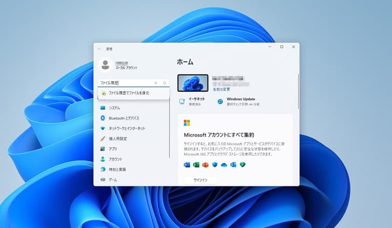 ※環境によってはファイル履歴の設定および復元の利用ができないこともあります。