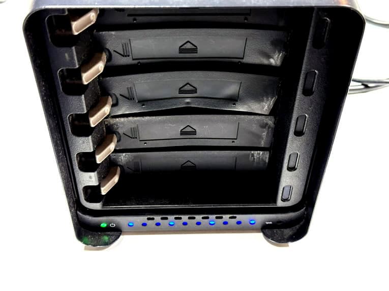※Droboのドライブベイの隣のLEDライトが赤く点滅した時にはディスクに物理障害が発生していることが多いものです。Drobo内のデータが大事、無くなったり取り出しができなくなったりしたら困ると少しでも考えた場合には本体の電源を切ることを優先しましょう。