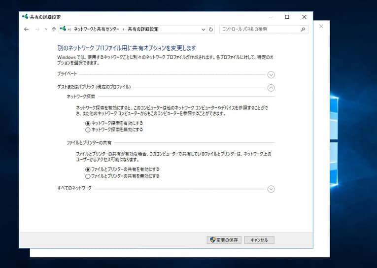 - 「パブリックネットワーク」または「プライベートネットワーク」になっていることを確認