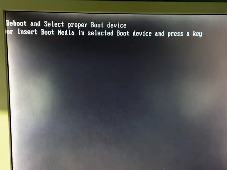 | Reboot and Select Proper Boot Device or Insert Boot Media in Selected Boot Device and Press a Key | PCが起動可能なデバイスを見つけられなかったことを示し、ユーザーに適切なブートデバイスを選択するか、ブートメディアを挿入するように指示しています。 |